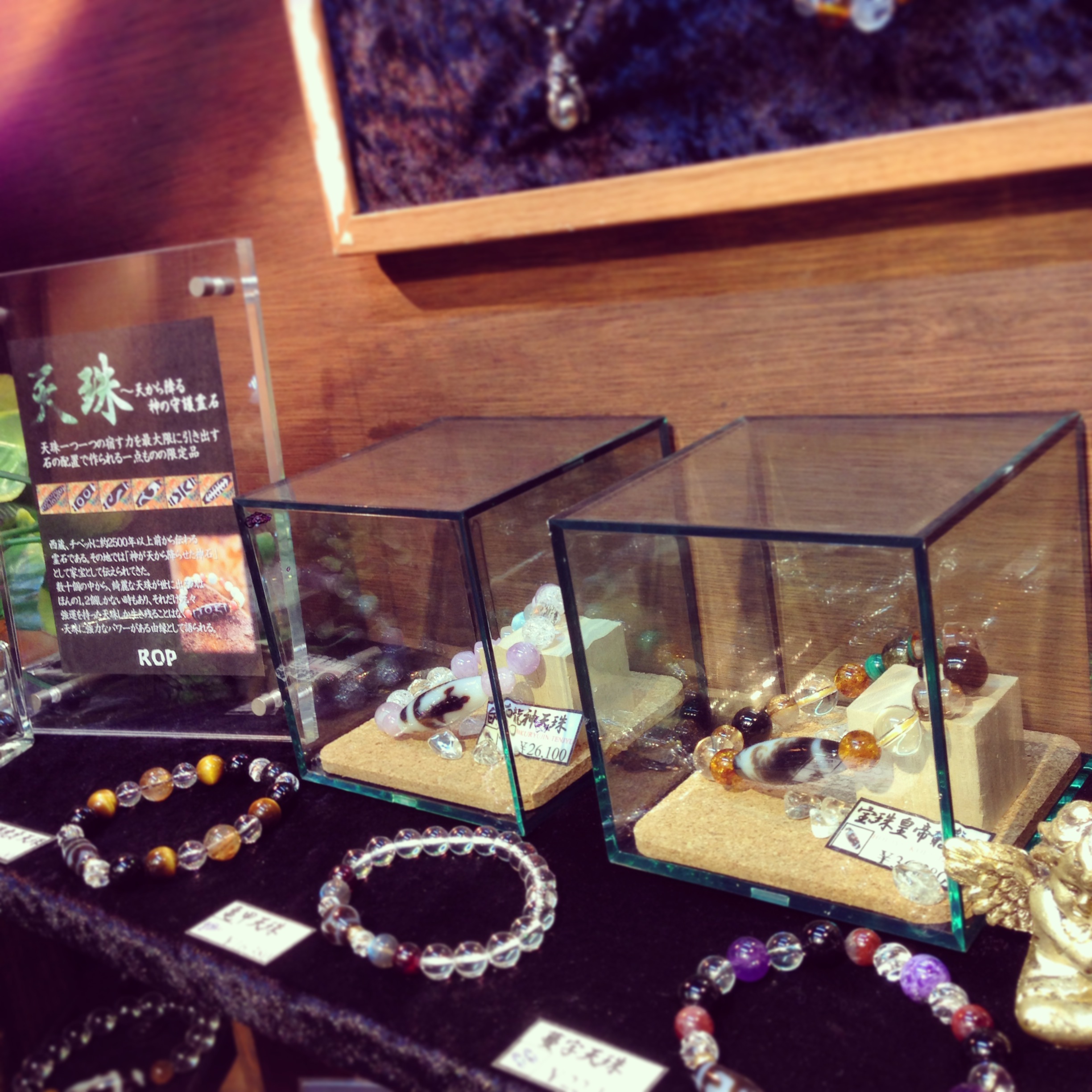 鈴木杏樹みたいに言ってみました ROPです☆ 天珠のコーナーを移動しました 天珠はやはりショーケースに入ってた方がいい! それくらい神聖、神々しい。 僕の好きなブレスなのでね☆ こうして大事にディスプレイすると天珠も 喜ぶってもんだっ! だいぶGWでなくなったので、またいい天珠 探さなきゃ!! まだまだ天珠はおススメです☆☆